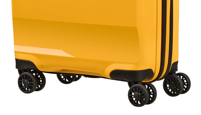 Doppelrollen für leichtes Handling und stabiles Manövrieren, ergonomischer Soft-Touch-Griff oben und seitlicher Tragegriff sorgen für ultimativen Komfort.