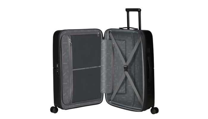 Einfaches Verstauen und Trennen deines Gepäcks mit den elastischen Kreuzbändern im unteren Fach und der Trennwand mit Netztasche und Reißverschluss im oberen Fach.