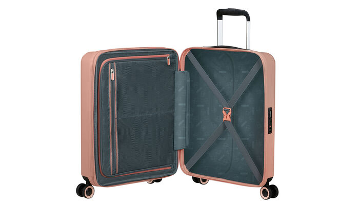 Einfaches Verstauen und Trennen deines Gepäcks mit den elastischen Kreuzbändern im unteren Fach und der Trennwand mit Netztasche und Reißverschluss im oberen Fach.