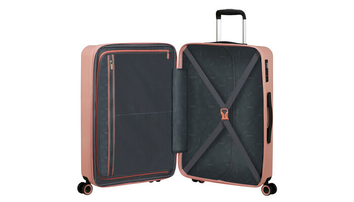 • 100 % (nach Gewicht) des Innenfutters, der Dehnfalte und der Reißverschlüsse bestehen aus recyceltem PET-Kunststoff, der aus 18 recycelten 500-ml-Flaschen hergestellt wurde.