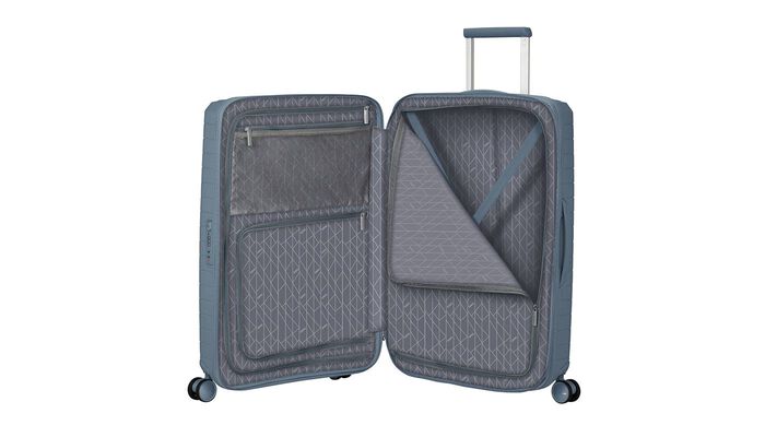 - Oberes Fach mit Trennpolster, Bändern und Taschen