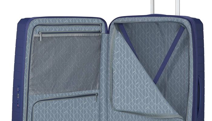 • Oberes Fach mit Trennpolster, Bändern und Taschen
