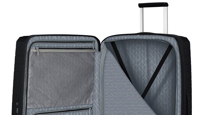 - Oberes Fach mit Trennpolster, Bändern und Taschen